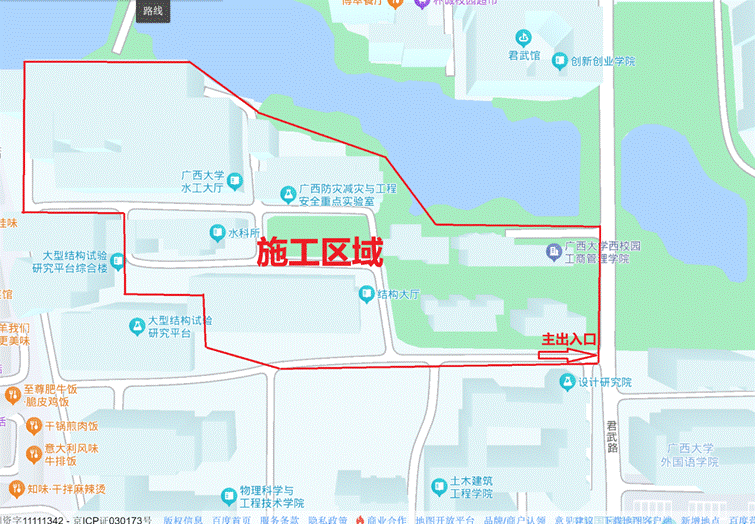 土木工程综合实验中心项目属于自治区统筹推进的重点项目,施工工期为2024年10月23日至2026年9月26日,目前该项目已正式开工建设,在施工期间会对周边环境造成一定影响,特别是在桩基施工、土方清运、混凝土浇筑等施工环节,将产生一定的噪声和扬尘。为减少对周边环境的影响,我处已要求施工单位优化施工工艺,落实降噪、降尘措施,科学规划施工流程。同时,施工期间在工地主出入口(君武路)将有大型施工车辆进出,请过往行人及车辆注意观察、减速慢行,配合项目安全员的交通指挥,确保安全通行。